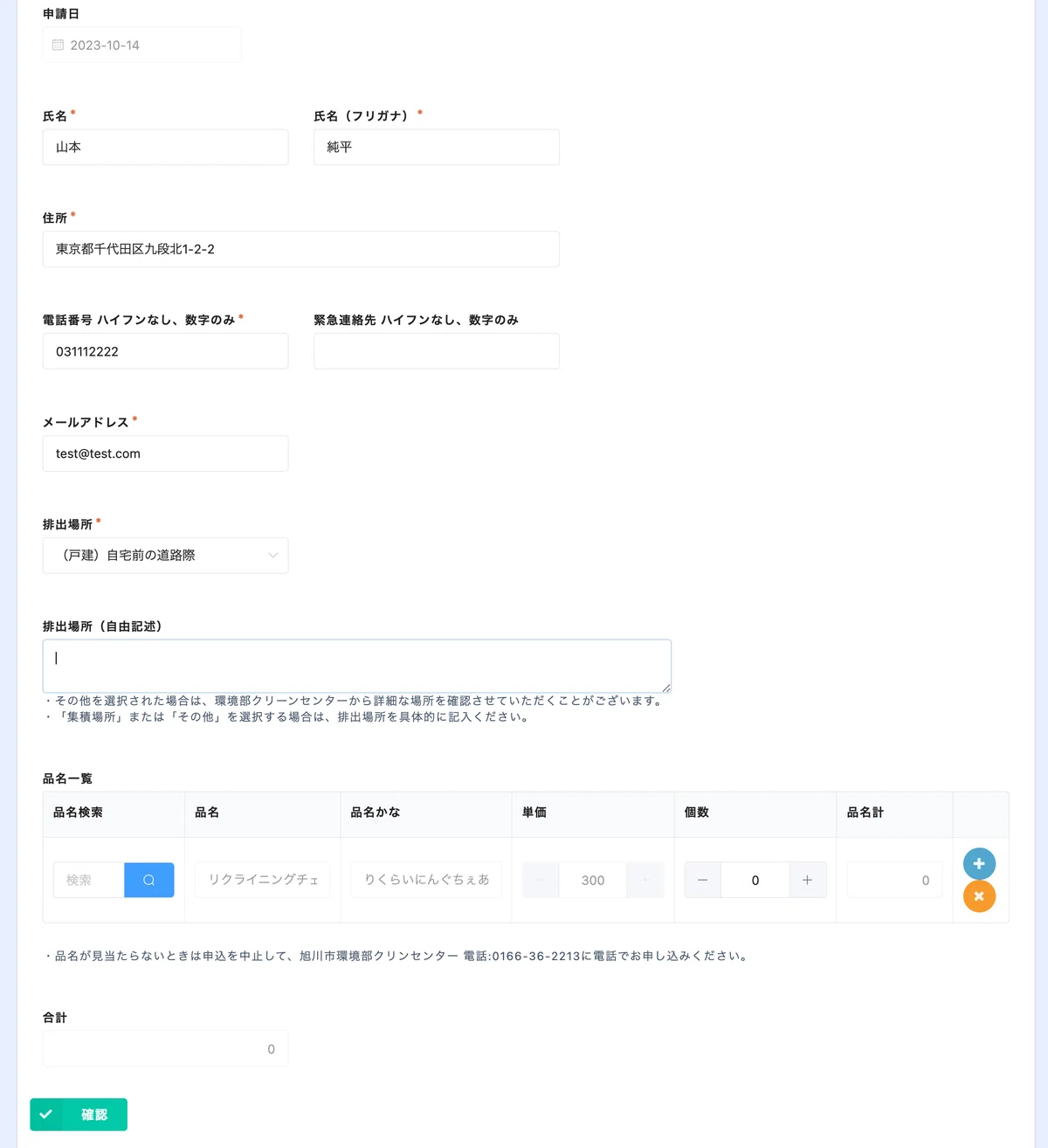 申請者は、Webフォームから申請情報を登録します。