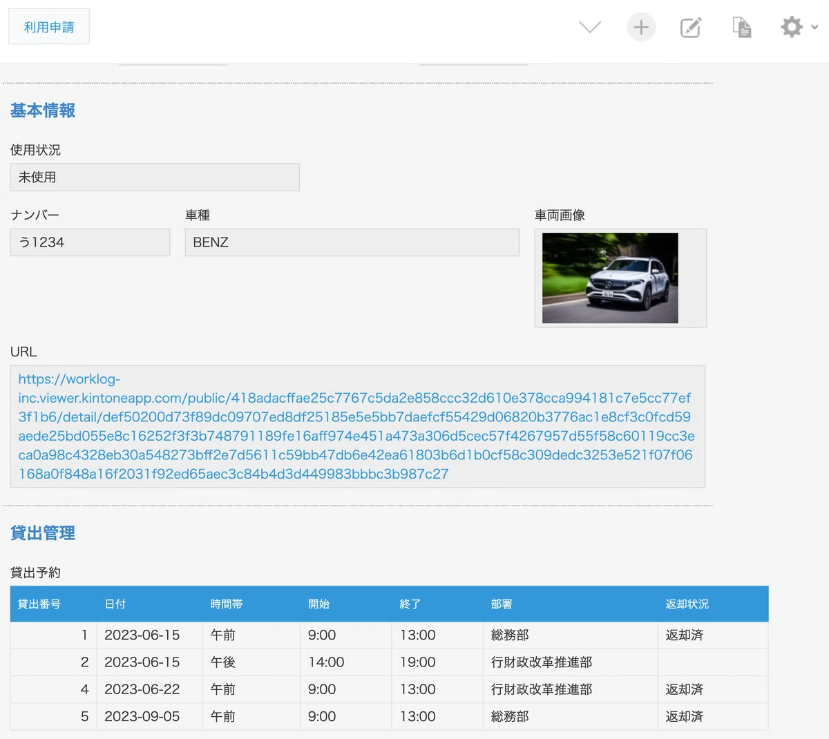 また、庁内での活用事例として、kintoneアプリのURLも記載しておくと、具体の利用イメージを伝えることができます。