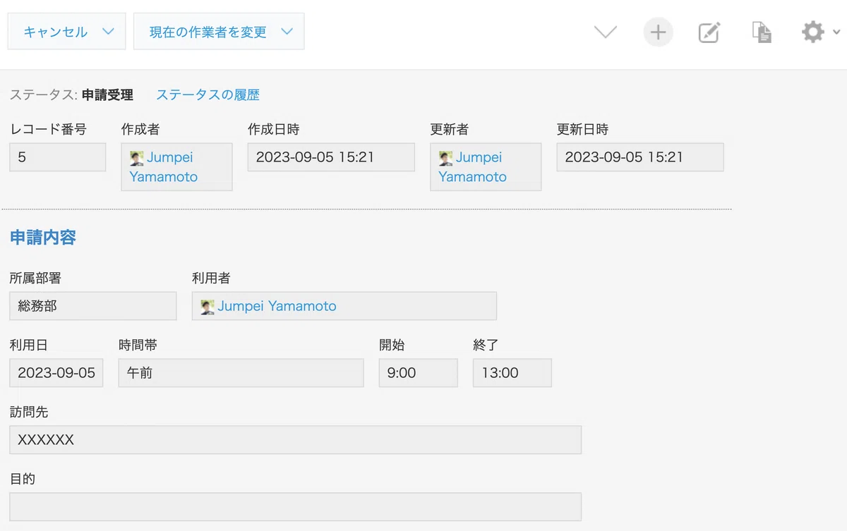 kintoneには申請内容を管理するアプリを用意し、