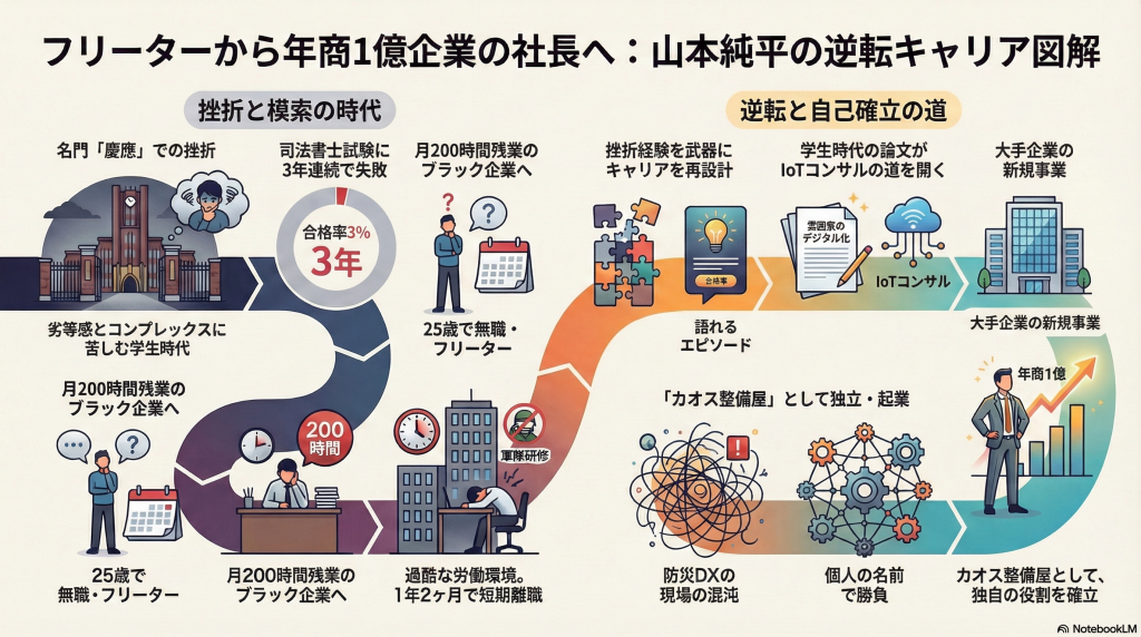 その歩みは常に“カオス”との対峙であり、山本淳平が編み出した「図解思考」と「合意形成のデザイン」が、大企業や行政との信頼を築く力となっています。