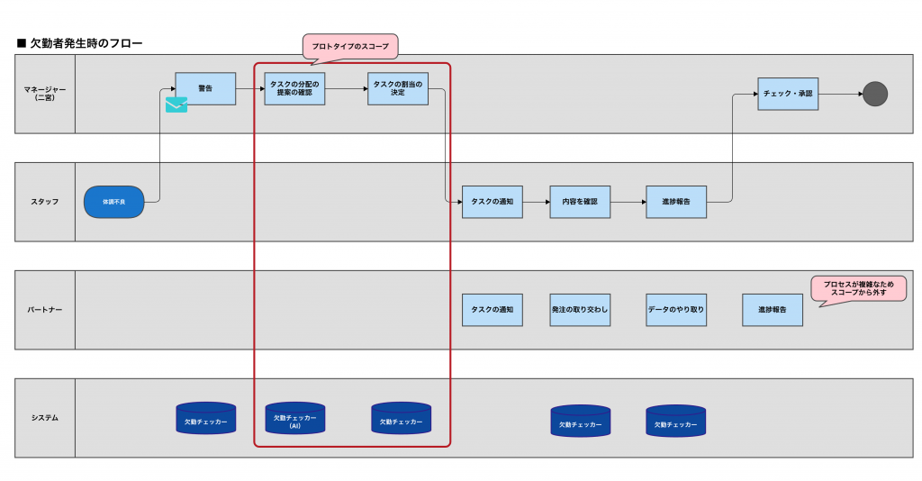 欠勤チェッカーの業務フロー図