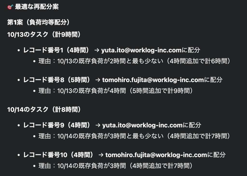 AIによるタスク再分配案