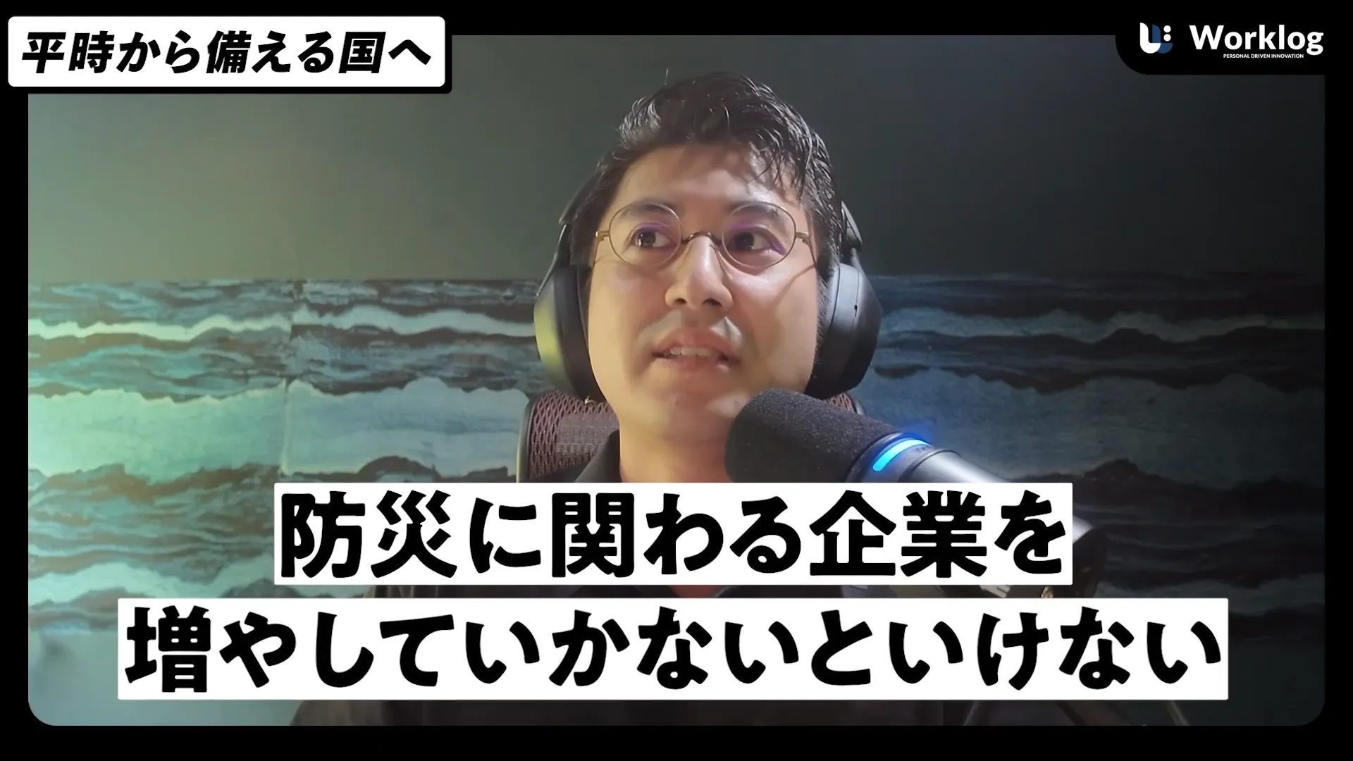 その上で、防災に関わる企業を増やしていかなきゃいけないと思ってます。ワークログ1社で全国のどんな災害にも耐えられるかって言うと、当然無理なので。